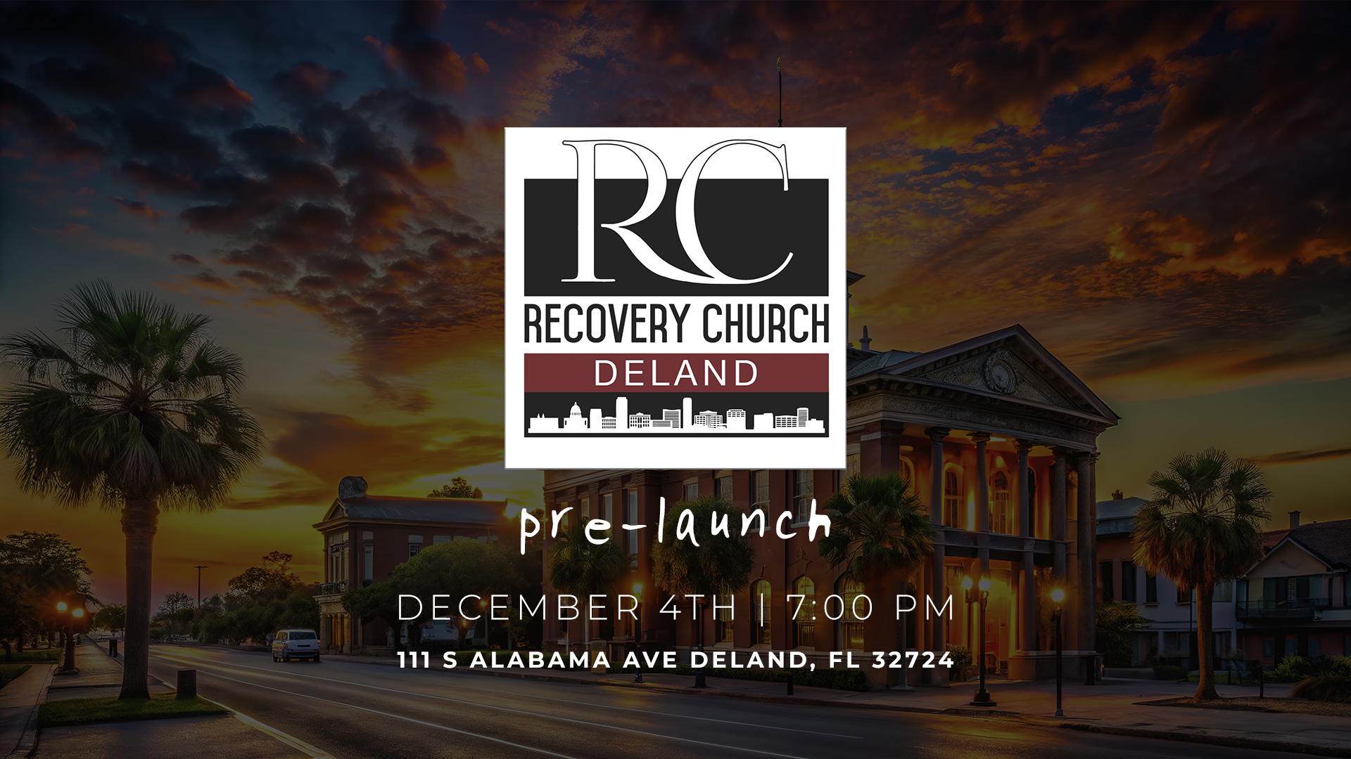 Pre-Launch Event for Recovery Church DeLand on Thursday, December 4th at 7:00 PM.