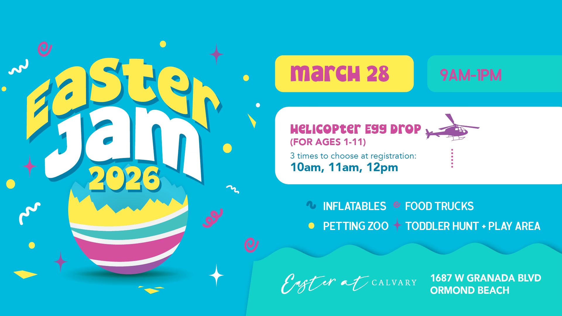 Join us on March 28th for our Annual Easter Jam at Calvary Christian Center featuring a HELICOPTER EGG DROP!