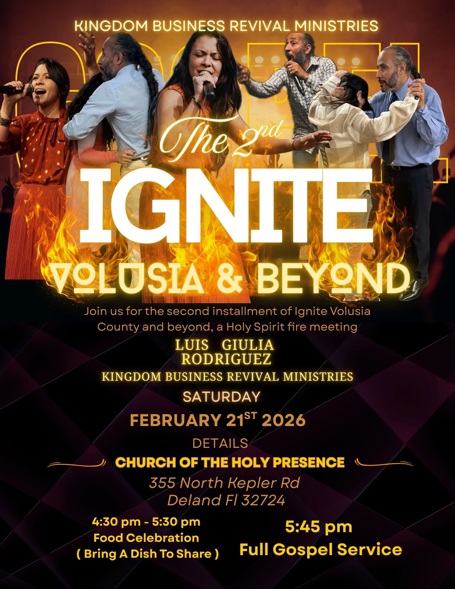 Ignite Volusia & Beyond – Spring Forth Into Action is a Holy Spirit fire gathering calling all people, all ages, and all communities to move from encounter to obedience.