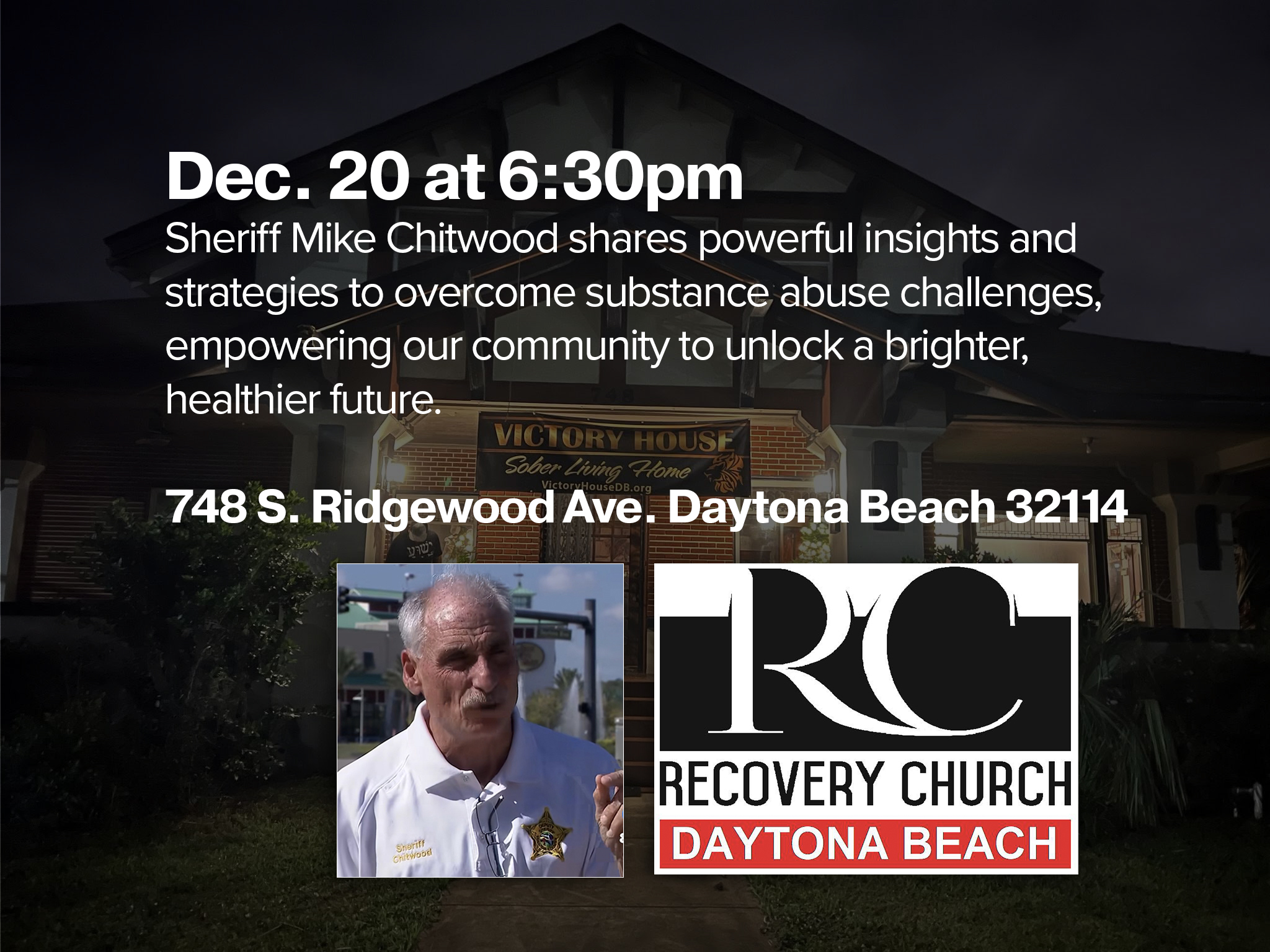Dec 20 6:30 pm - 8:30 pm Sheriff Mike Chitwood at Victory House Victory House 748 S Ridgewood Ave., Daytona Beach Event Details Get Directions